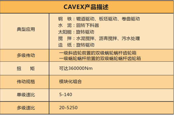CAVEX已經(jīng)有60多年歷史,擁有獨一無(wú)二的渦輪蝸桿設計。CAVEX渦輪蝸桿因其決定性的優(yōu)勢而被不同的工業(yè)領(lǐng)域所青睞。CAVEX品牌名稱(chēng)源自拉丁語(yǔ)字Concavus以及Convexus。得益于凹形齒面蝸桿與凸形渦輪的良好配合,CAVEX渦輪蝸桿遠優(yōu)于同樣尺寸蝸輪蝸桿的性能。